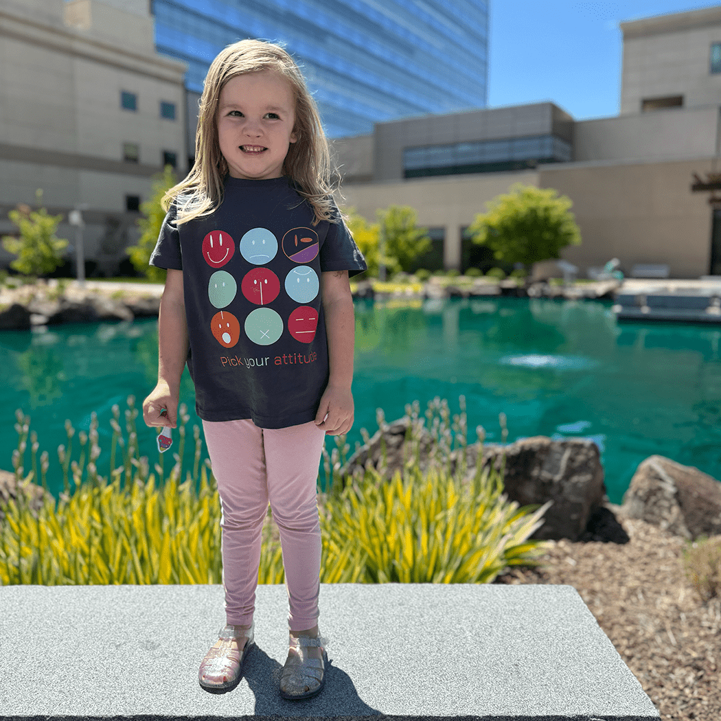 This tee isn't just comfy; it's a wearable mood ring for all the awesome little personalities out there! Featuring a grid of fun and expressive smiley faces and the playful text "Pick your attitude," this tee is for those who embrace every feeling and aren't afraid to show it. If expressing yourself is your superpower, then this tee is your new uniform.