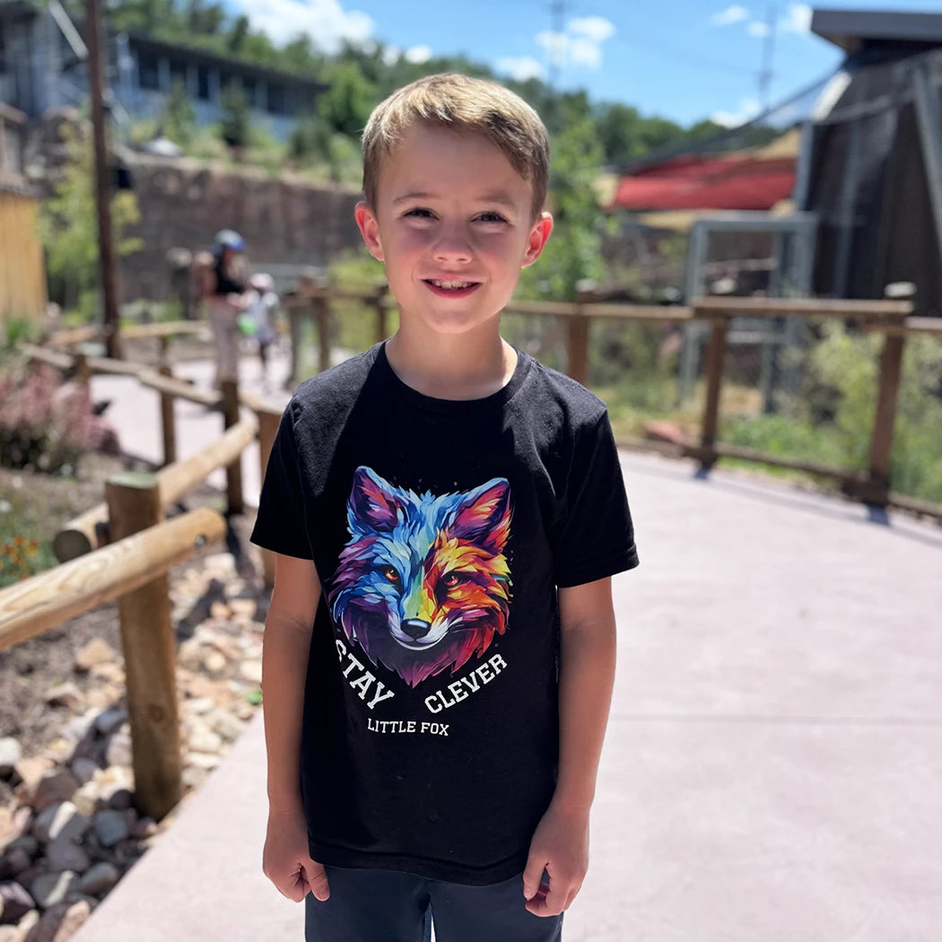 Unleash your child's clever and curious spirit with our "Stay Clever Little Fox" graphic tee! More than just a shirt, it's a vibrant reminder to embrace their intelligence, resourcefulness, and unique personality. This tee is for every kid who's quick on their feet and full of bright ideas, just like a clever fox. Featuring a stunning, multi-colored fox graphic in a dynamic, watercolor-like style, along with the inspiring message "STAY CLEVER LITTLE FOX," this shirt is a wearable tribute to their inner brilliance. Designed by Jax at 7 years old!